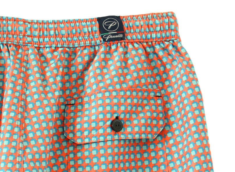 Le tonalità pesca, turchese e corallo tenue evocano calore, luce ed una raffinata eleganza estiva, rendendo questo costume perfetto sia per la spiaggia che per la piscina.